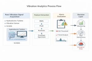 Vibration analysis is not merely a signal processing task; without proper infrastructure, it cannot be integrated into operational decision-making. In hydroelectric power plants, high-frequency vibration data from sensors must be evaluated together with SCADA systems.