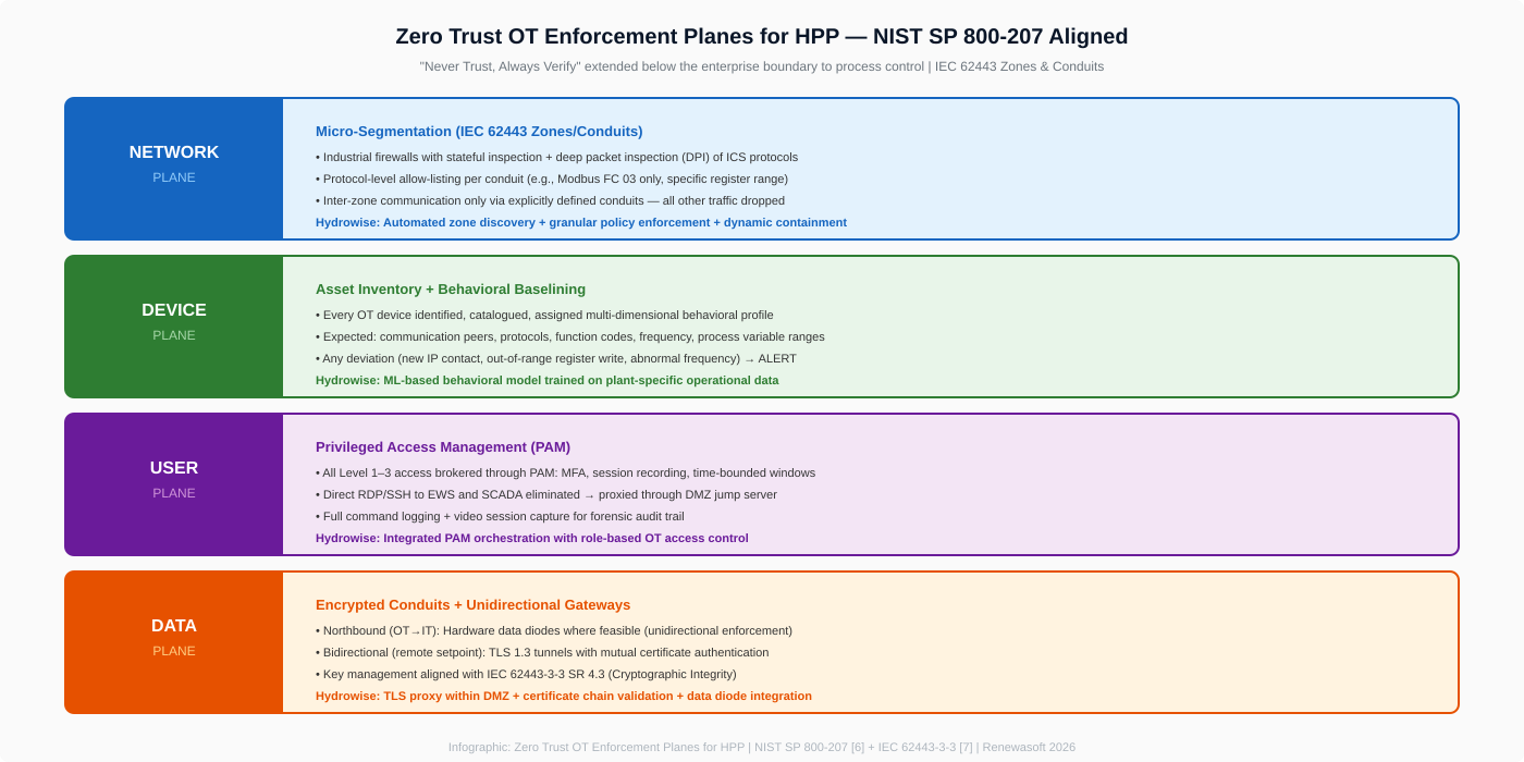 Infographic 2: Zero Trust OT Enforcement Planes for HPP — NIST SP 800-207 Aligned [7][8]