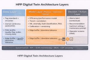 A digital twin in HPPs is not “more data,” but a way to produce better decisions. Unless field data flow, a validated model, and an action chain are established, a digital twin remains at the dashboard level [2][3]. The best results come from starting with narrow-scope, high-value scenarios (efficiency band, early warning trends, alarm correlation) and scaling with data and model governance in place [4][6][7].