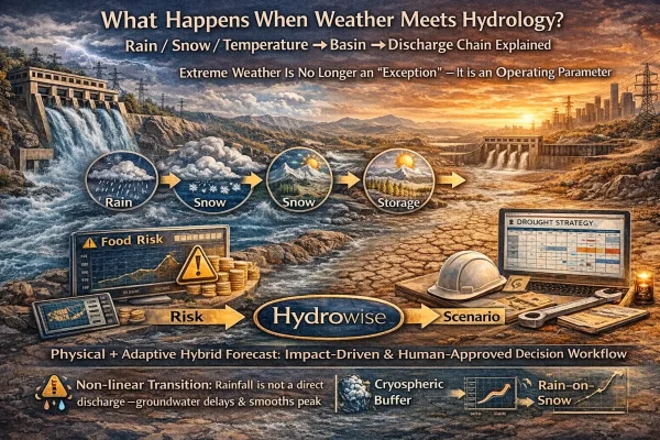 What Happens When Weather Meets Hydrology? Rain / Snow / Temperature → Basin → Discharge Chain Explained For hydropower operators, the most valuable question is simple to ask and difficult to answer: When will the water that falls from the sky become discharge—and how much power will it produce? In practice, the forcing (rain, temperature, […]