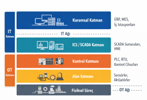 - IT ve OT katmanları mantıksal olarak ayrıştırılır
