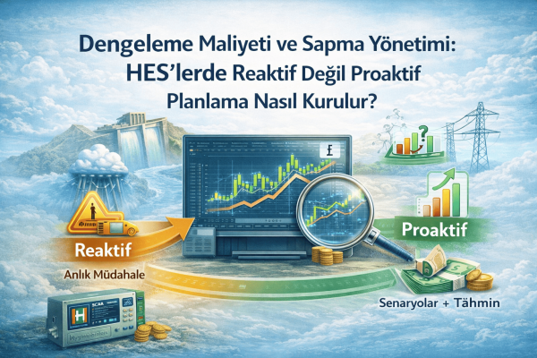 RENEWASOFT | TEKNiK BLOG Okuma Süresi: ~18- 20dk | Seviye: Orta Hedef Kitle: HES işletmecileri, SCADA mühendisleri, enerji şirketi yöneticileri Dengeleme Maliyeti ve Sapma Yönetimi: HES’lerde Reaktif Değil Proaktif Planlama Nasıl Kurulur? Hook + problem tanımı Bir HES’te “sapma” çoğu zaman sahada küçük görünür: debi beklenenden az gelir, türbin verimi düşer ya da bir kapak [...] Read More