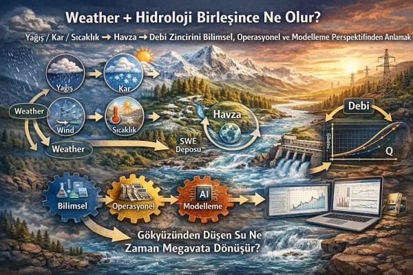 Weather + Hidroloji Birleşince Ne Olur? Yağış / Kar / Sıcaklık → Havza → Debi Zincirini Bilimsel, Operasyonel ve Modelleme Perspektifinden Anlamak “Gökyüzünden düşen su” ne zaman megavata dönüşür? Bir HES için kritik soru şudur: “Gökyüzünden düşen su ne zaman ve ne kadar megavata dönüşecek?” Bu sorunun cevabı yalnızca “kaç mm yağış oldu?” değildir. Atmosferden […]